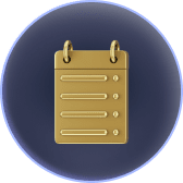 Icône de bloc-notes doré sur fond rond violet